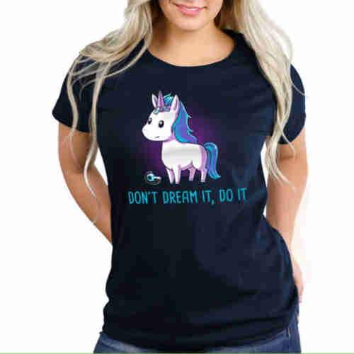 Don't Dream It, Do It - Tshirt With hard work and creativity, you can do anything! - Black, Unicorn, CuteWomen’s Relaxed Fit T-shirt: Navy 100% Sup...