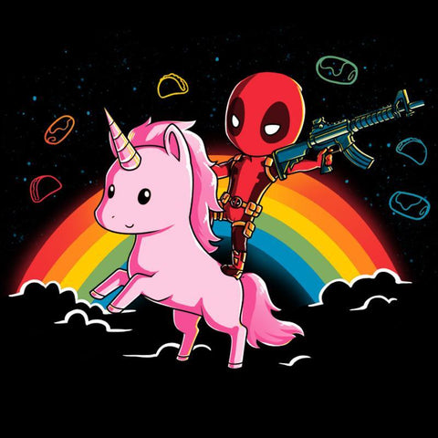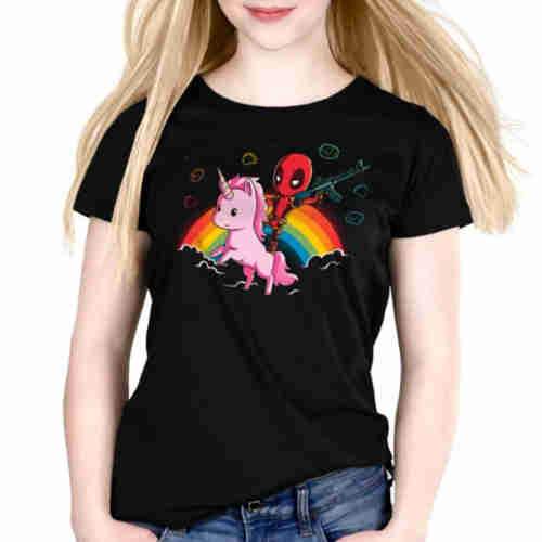 Nothing says epic like Deadpool riding a unicorn! Officially Licensed Marvel fitted tshirt featuring Deadpool on a Unicorn Women’s Relaxed Fit T-sh...