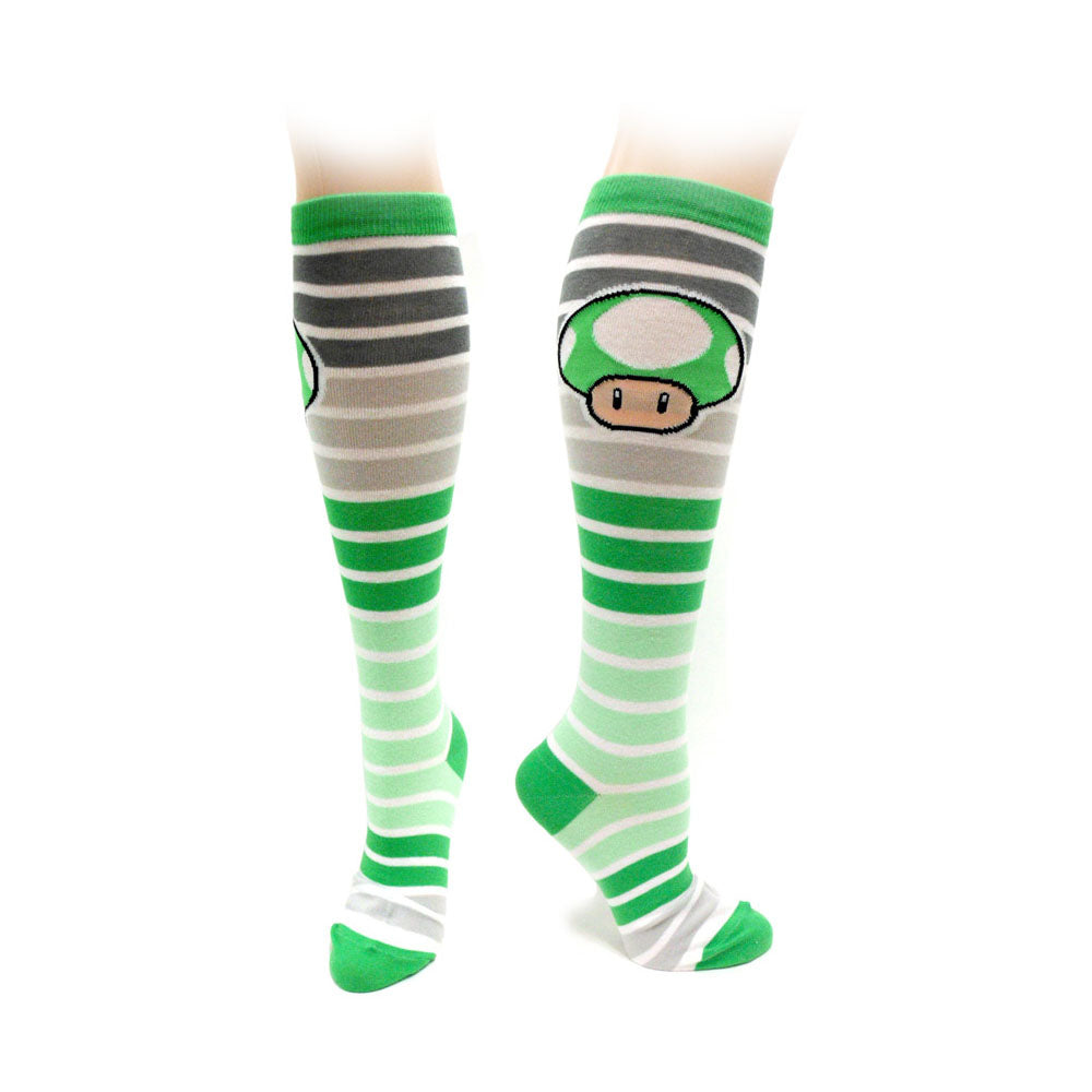 NINTENDO Super Mario Bros. Adult Female Green Mushroom Knee High Socks, One Size, Multi-Colour