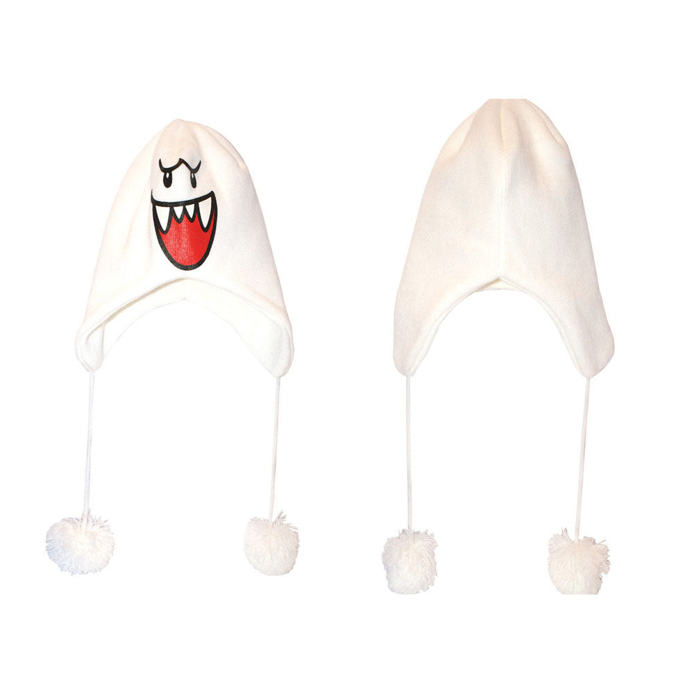 NINTENDO Super Mario Bros. Boo Ghost Face Ski Beanie with Poms, One Size, White (KC149521NTN)