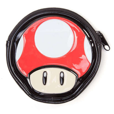 NINTENDO Super Mario Bros. Red Mushroom Shaped Zipped Coin Pouch Purse