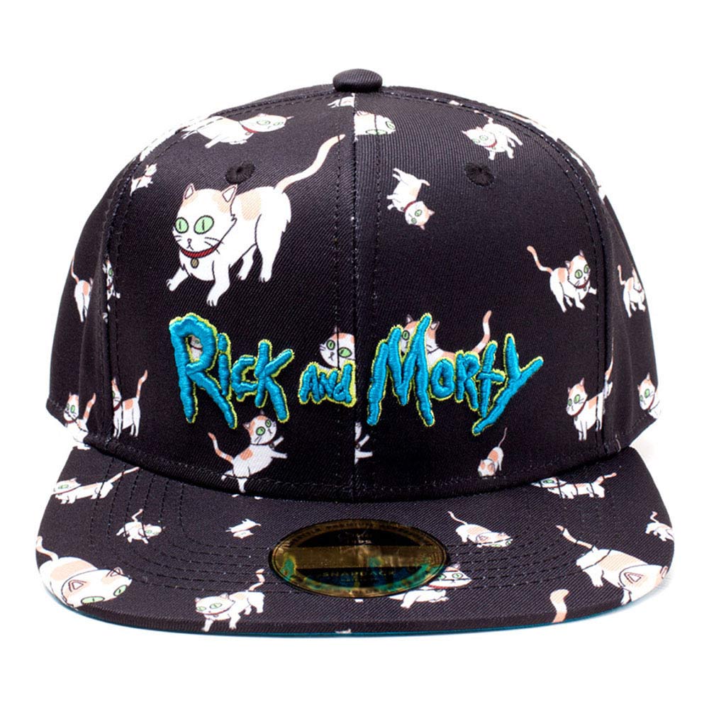 This awesome officially licensed Snapback Baseball Cap which has a Embroidered Logo and Cats All-over Print motif from Rick and Morty. Made from hi...