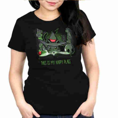 Shirt text; This is my happy place Women’s Relaxed Fit T-shirt: Black 100% Super Soft Ringspun Cotton Women’s Tee for a looser, more casual fit