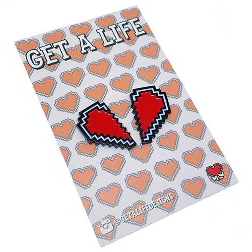 SPLIT PIXEL HEART : Two Piece Soft Enamel Pin Gamer Heart